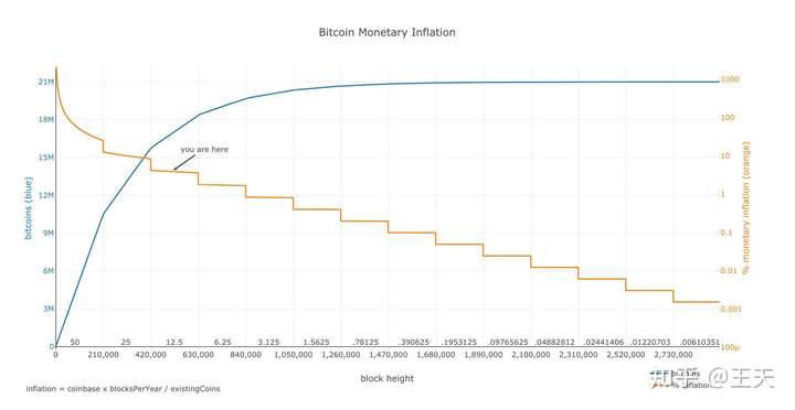回头来看比特币,每4年产量减半的比特币,在刚开始的时候,每一次 “挖矿” 的激励是 50 枚比特币,到今天已经变为 6.25 枚,而直到所有比特币挖完,总量也不过就是 2千1百万 枚,一个明显的流通量每四年下降的数字资产,可以说比特币是世界上第一个稀缺的数字化资产,明显和黄金的性质一样。