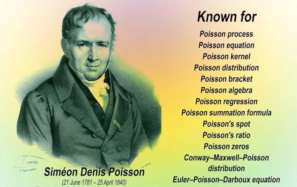 1837年,法国数学家、几何学家和物理学家西莫恩·德尼·泊松(Simeon-Denis Poisson, 1781-1840)发表了论文《关于判断的概率之研究》,提出了一种随机现象的分布,这就是日后在统计学和概率论中占据一席之地的“泊松分布”。泊松分布是一种离散概率分布,描述了单位时间或空间内发生给定数量的随机事件的概率,如果这些随机事件以已知的常数平均速率发生,且独立于距上一次事件发生的时间。[wikipedia]