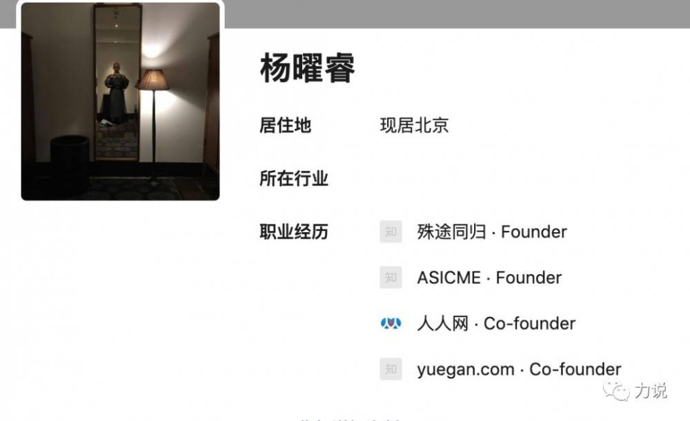 我尝试着从杨的社交媒体去寻找他对这段历史的回忆,知乎主页职业经历介绍上短短的一句话:ASICME Founder。