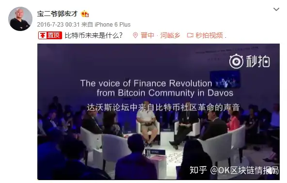 2016年宝二爷受邀参加达沃斯论坛,据说他以为就是几个人坐在一起聊聊天,也或许他就是这么“放荡不羁”,他穿着T恤拖鞋就去了,坐在西装革履的金融人士中间,显得十分“与众不同”。在活动现场用英文大谈比特币、区块链、金融科技、国家主权等高大上的词汇,他大肆宣扬自己是比特币的死忠粉,甚至频频爆出惊人之语,一时间可谓是赚足了眼球,币圈很多人开始关注宝二爷这个人物。