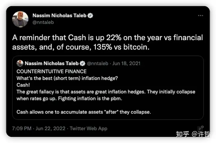 关于塔勒布撕币圈的事情以后再说(那是相当的丰富),今天的主题是Cash并不总是垃圾,也是资产的一类。