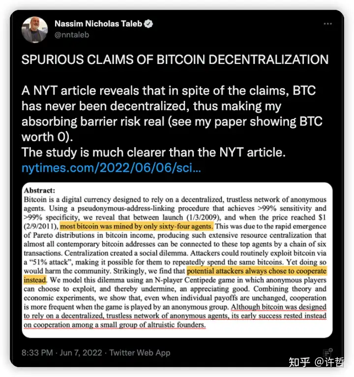所以比特币是否真的中心化确实是一个议题,但纽约时报的记者吧……还是要学习一个。