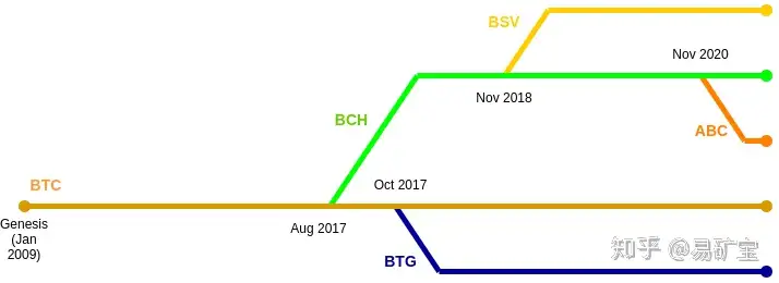 上图展示了主要的比特币分叉历史事件,这个数据截至 2020 年,还不包括 Bitcoin Diamond, Bitcoin Rhodium, Bitcoin Private, 或任何其他长长的其他一些分叉后并不太出名的比特币分叉项目,不过我强烈建议你完全忽略这些分叉,或者卖掉他们(也许你也应该卖掉上面列出的一些分叉,例如 BSV 绝对是个骗局!)