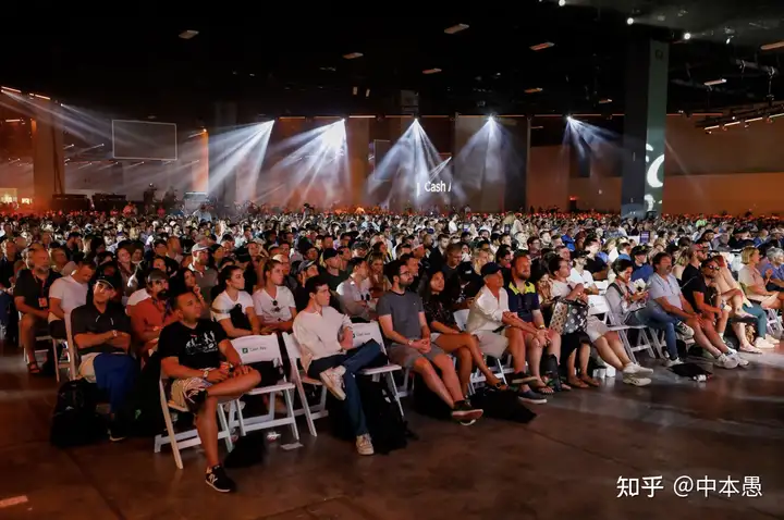 图:2022年4月,在迈阿密的一场比特币会议上,一群人聚集在一起。