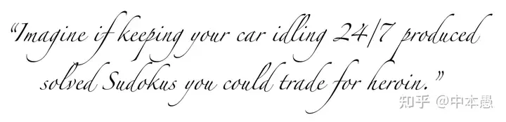 在某种意义上,这纯粹是浪费。人们有时会说,比特币矿工实际上正在解决困难的数学问题来进行挖矿,但事实并非如此。他们每秒在进行数以千万计的猜数字游戏,以尝试获得正确的散列值。在这些巨量的猜测中,没有数学问题被解决,世界的知识也没有增加。