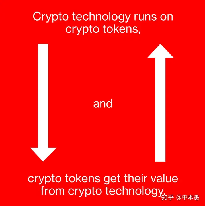 图:加密技术基于加密代币运行,加密代币从加密技术中获得价值。