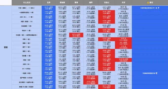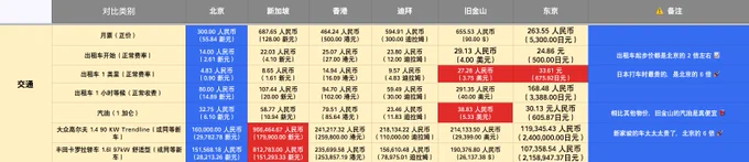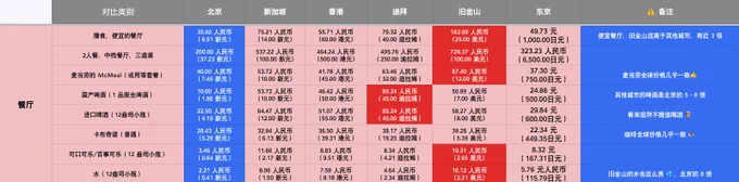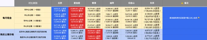 东京是最贵的,是北京 6 倍多,新加坡才 2 倍 🤣