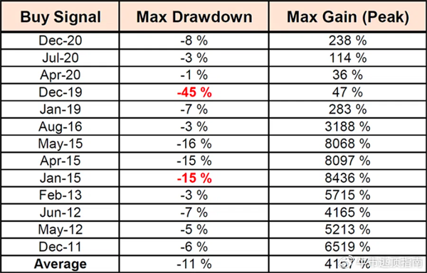 如果运用这一策略买入大饼,过去每次的最大回撤与峰值收益:大部分时候看起来还是很不错的