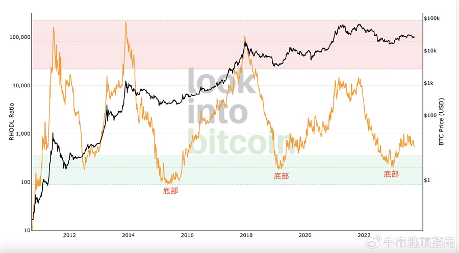 RHODL比率查看1周的RHODL频段与1-2yrs的RHODL频段之间的比率。