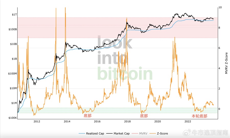 它还显示了市场价值何时远低于已实现价值(超卖),通过进入绿色框的 z 分数突出显示。从历史上看,在这些时期购买大饼会产生巨大的回报。
