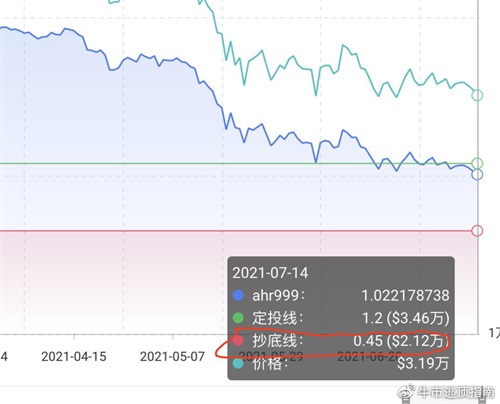 如果当下想要抄底的话,可以参考一下目前0.45对应的价格,大概在2.12万左右,也就是说,当大饼价格低于2.12万以下时,进入了抄底区间,可以考虑分批抄底。