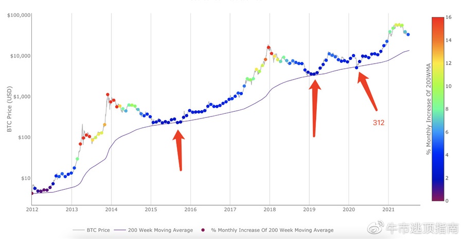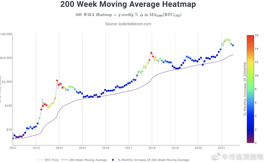 3.第三个要介绍的抄底指标是”200 Week Moving Average Heatmap“ 中文翻译过来叫做 200周移动平均热图。