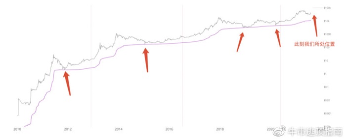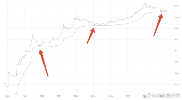 指标的含义是 在每一个主要的市场周期中,大饼的价格都在200周移动平均线附近触底,可以看下图所示: