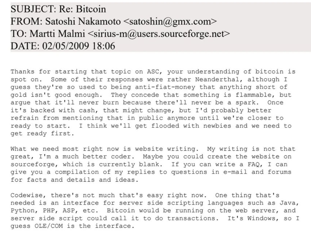 比特币发布后的答疑解惑,中本聪与早期合作者 Martii ‘Sirius’ Malmi 的邮件往来