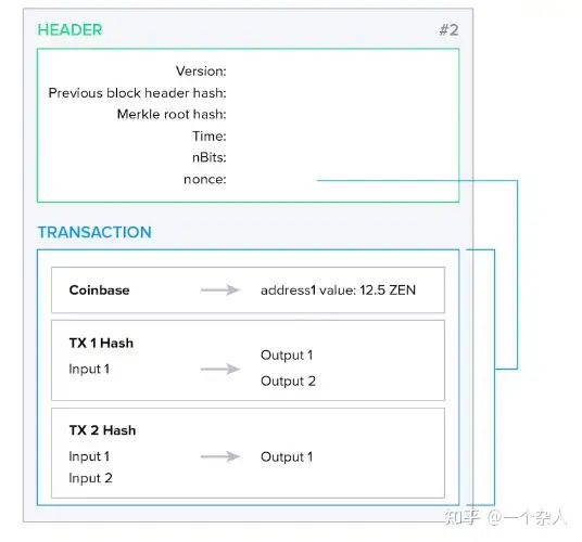 具体的结构是这样的,它由一个包含元数据的区块头和紧跟其后的占据区块最大空间的一长串交易列表组成,每个区块通过一个经过 hash 计算的引用前后连接。