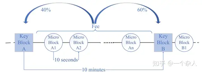 为了提升扩展性和减少能耗,Bitcoin-NG 使用了两种区块:一个是 key block,一个是 microblocks 来促进吞吐量。