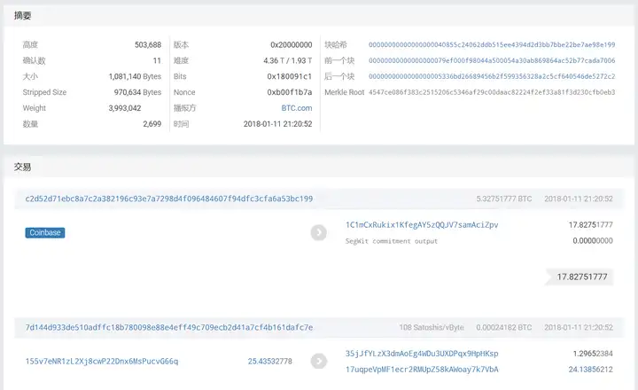 这笔交易被广播到比特币网络,大约 10 分钟后被打包进一个区块,加入到区块链。