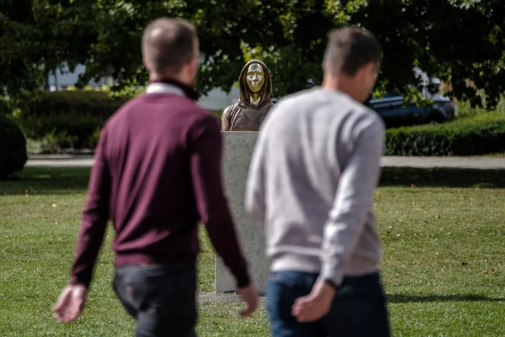 ● 2021年,匈牙利布达佩斯,比特币发明者中本聪的雕像。由于中本聪的真实身份尚不确定,雕像的创作者使用了匿名的面部特征。图源视觉中国