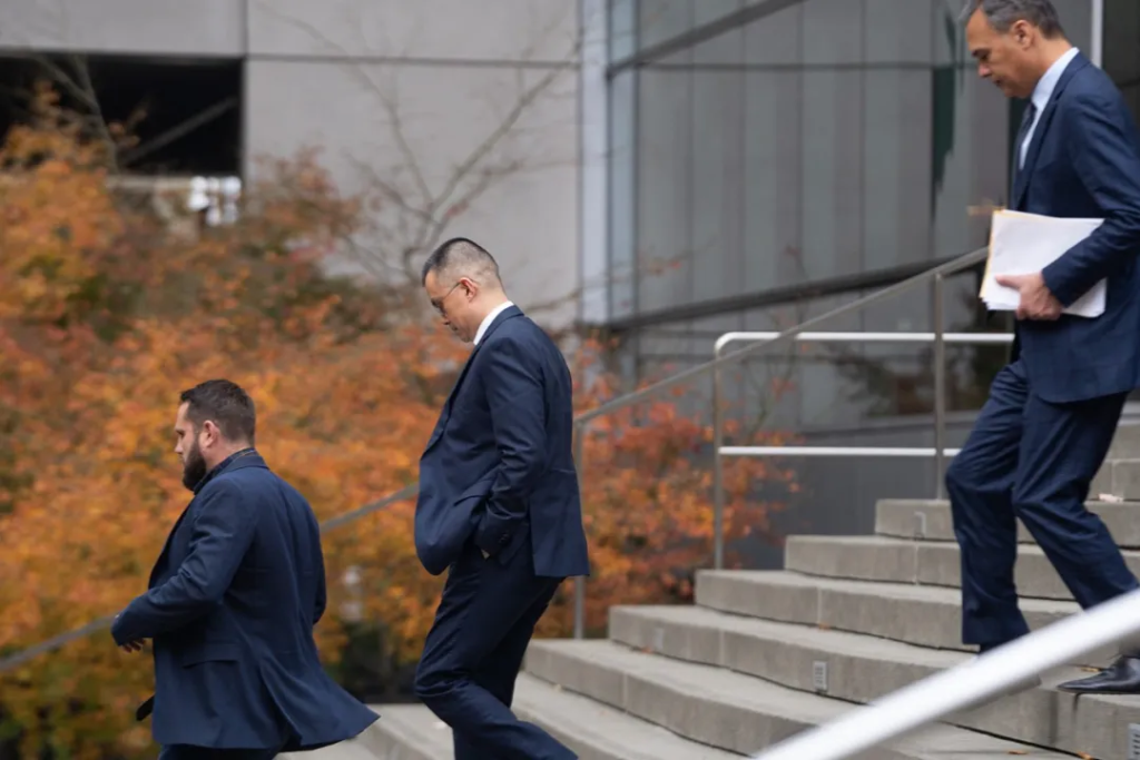 ● 2023年,美国西雅图,赵长鹏离开法院。图源视觉中国