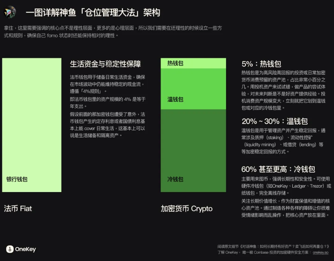 总结来说,认知是长期持有好资产的基础。如果没有对资产上限的清晰判断,也不了解支撑其价值的逻辑,就很难坚持长期持有。像神鱼提到的冷钱包策略和“卖一半”的方法,都是在认知不足时帮助控制冲动的有力补充。但归根结底,认知和信仰才是关键所在。
